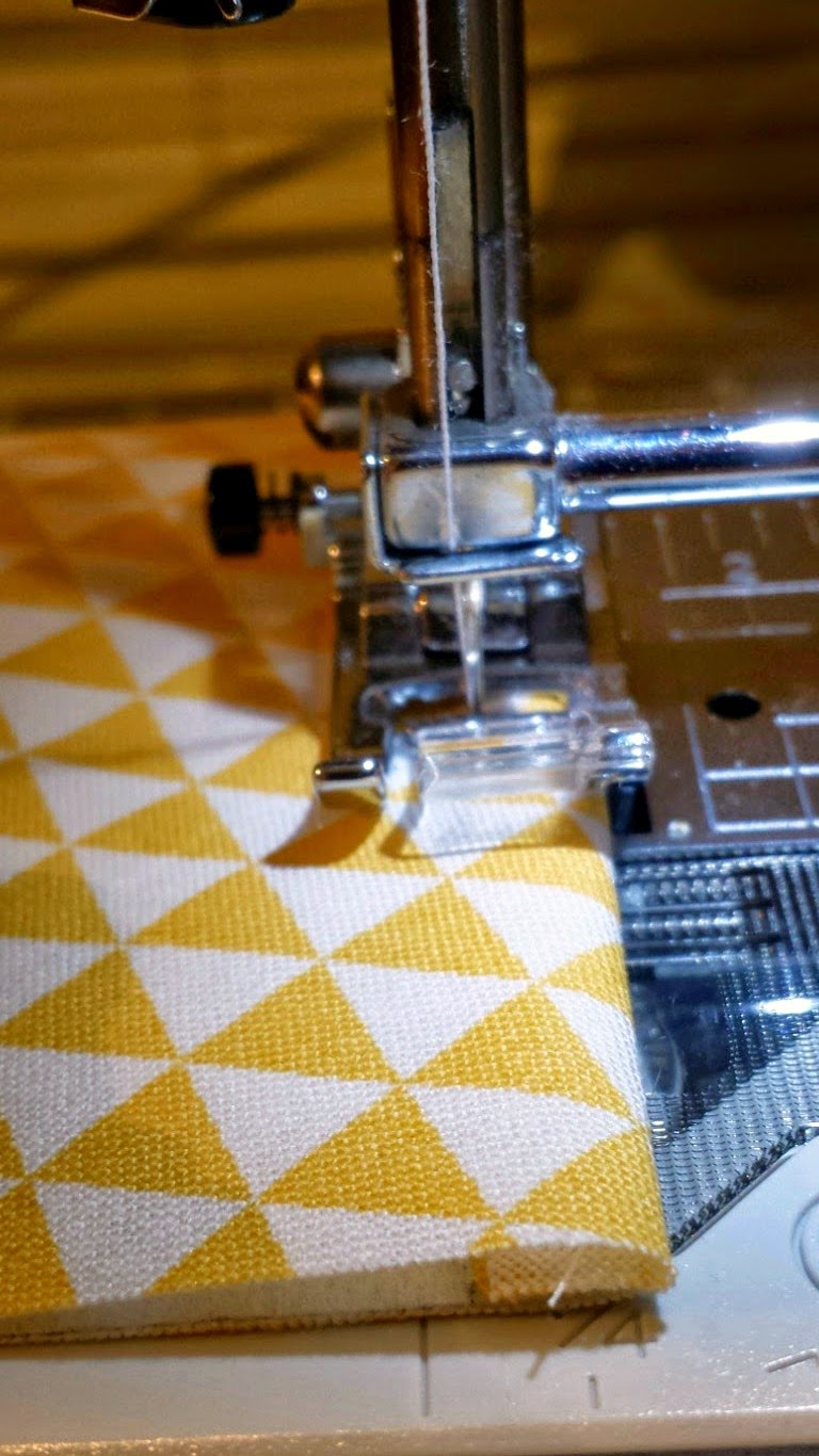 13. Carefully sew all around with about a 5/8" SA all but in between the pins. A while back I found this nifty trick that helps to turn in the SA at the opening...when you start and stop, sew from that point straight out to the edge of the fabric. This will help guide the SA inside once turned. Also, I like to backstitch 2-3 stitches on each side of the corners just to help reinforce them.14. Clip corners and carefully turn RSO through the opening. Carefully poke out the corners and using lots of steam and a hot iron press really well (don't iron over plastic snaps!)